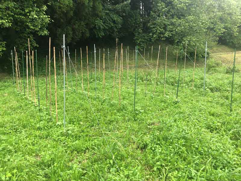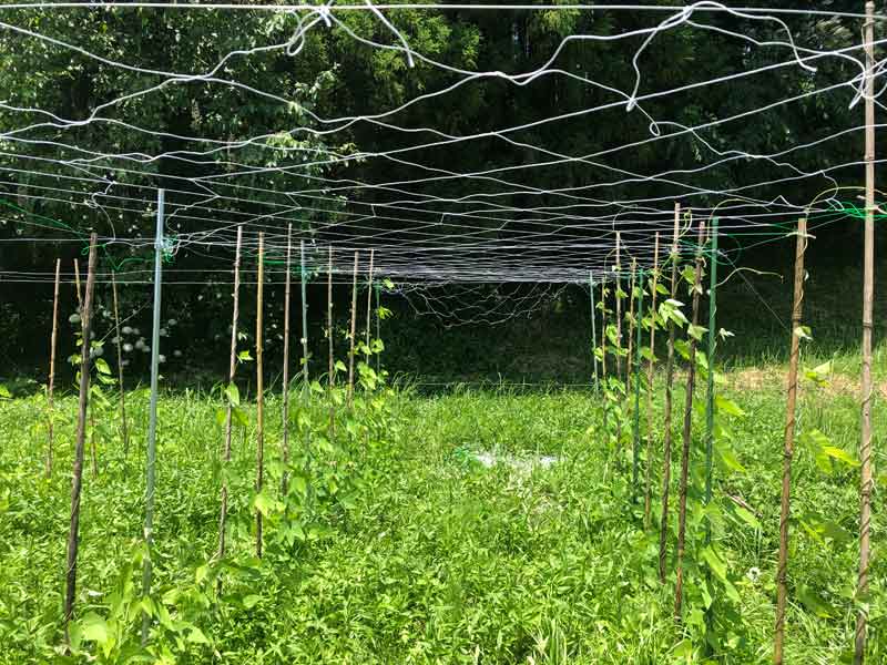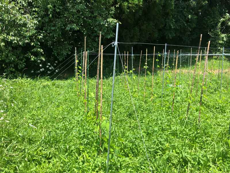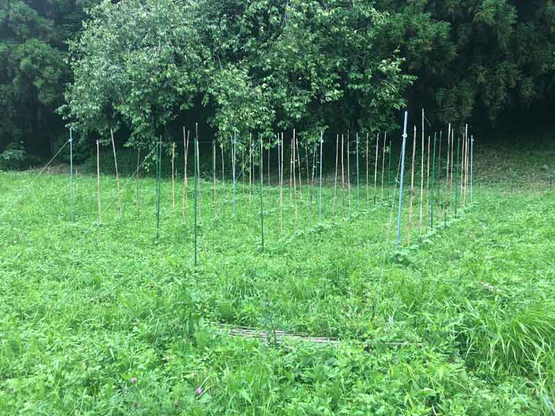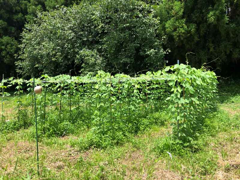 前回、6月に行った支柱の設営とムクナマメの種まきの様子はこちら