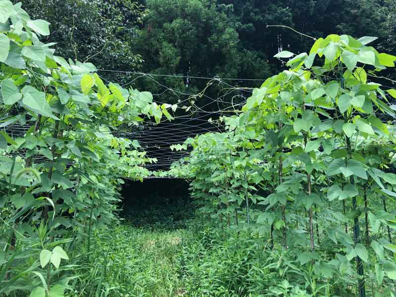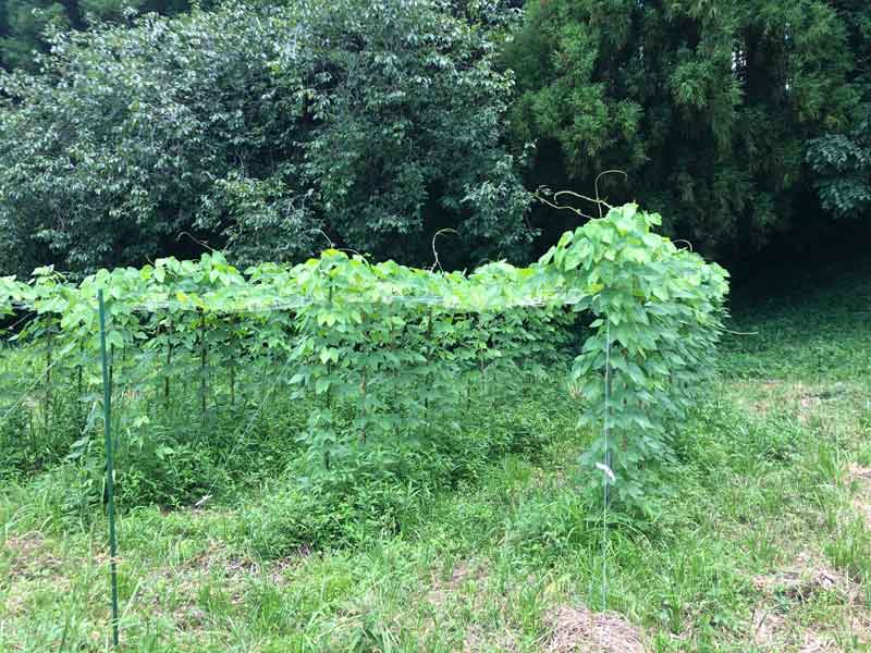 この日は、周りの草刈りと、ネットの補強、そして背丈よりも伸びた蔓を、ネットに絡ませる作業をしました。