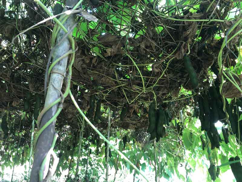 雨が降ると重くなって、支柱が支えきれるか少し心配です。
