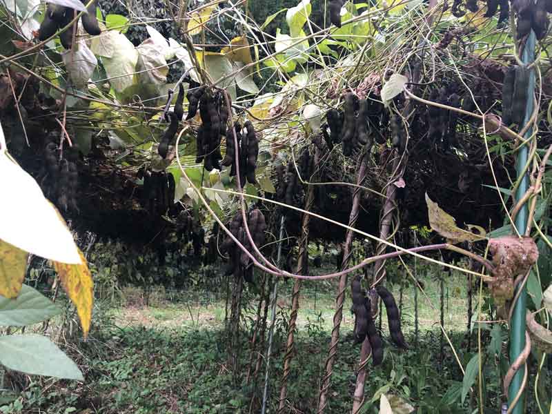 莢もだいぶ黒くなってきて、緑の部分が少なくなってきています