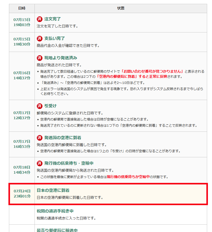 届くのに3週間くらいかかるのかなと思っていたのですが、ぽちたまさんからのメールで、配送状況がわかるサイトを教えていただきました。このサイトが秀逸!