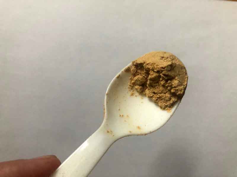 それで、こがね散は、スプーン1杯で約75mgなので、1杯分食べれば、少しは効き目がありそうな感じなのですが・・・